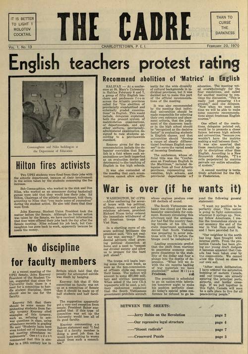 Title The Cadre -- 1970-02-20 -- Page 1 Date Issued 1970-02-20 Language English Type Text Genre Page Extent 1 page Rights This material has been made available for research, education, and private use only. Publication, distribution or commercial use of the material requires permission from the copyright holder. Member of The Cadre -- 1970-02-20 Digitization Agency Robertson Library, UPEI Reel Sequence Number 0085 Page Number 1 Owning Repository Robertson Library, UPEI