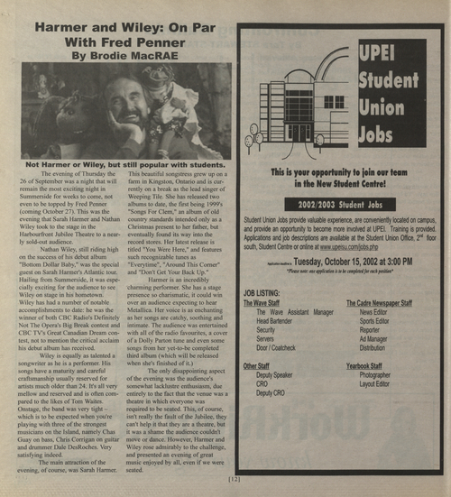 Title The Cadre -- 2002-10-16 -- Page 12 Date Issued 2002-10-16 Language English Type Text Genre Page Extent 1 page Rights This material has been made available for research, education, and private use only. Publication, distribution or commercial use of the material requires permission from the copyright holder. Member of The Cadre -- 2002-10-16 Digitization Agency Robertson Library, UPEI