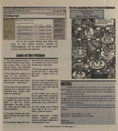 Title The Cadre -- 2004-10-12 -- Page 11 Date Issued 2004-10-12 Language English Type Text Genre Page Extent 1 page Rights This material has been made available for research, education, and private use only. Publication, distribution or commercial use of the material requires permission from the copyright holder. Member of The Cadre -- 2004-10-12 Digitization Agency Robertson Library, UPEI