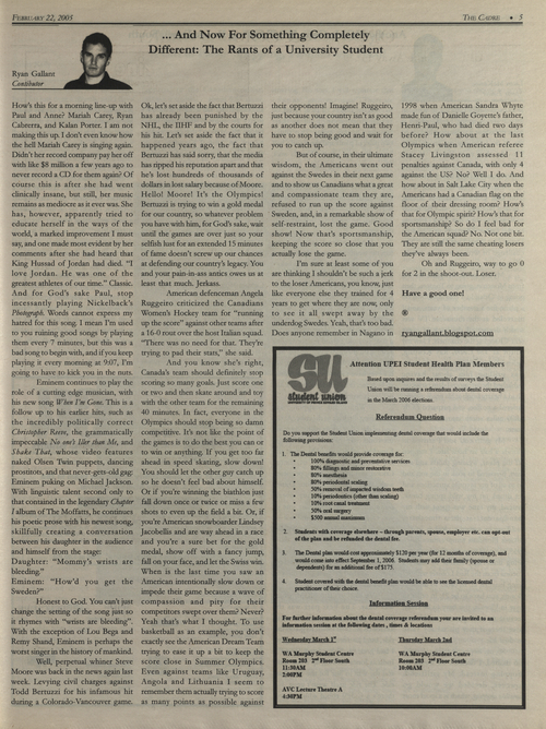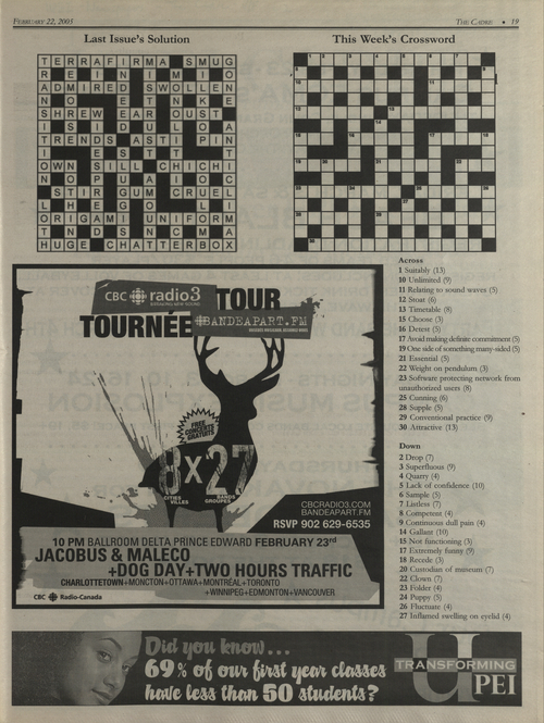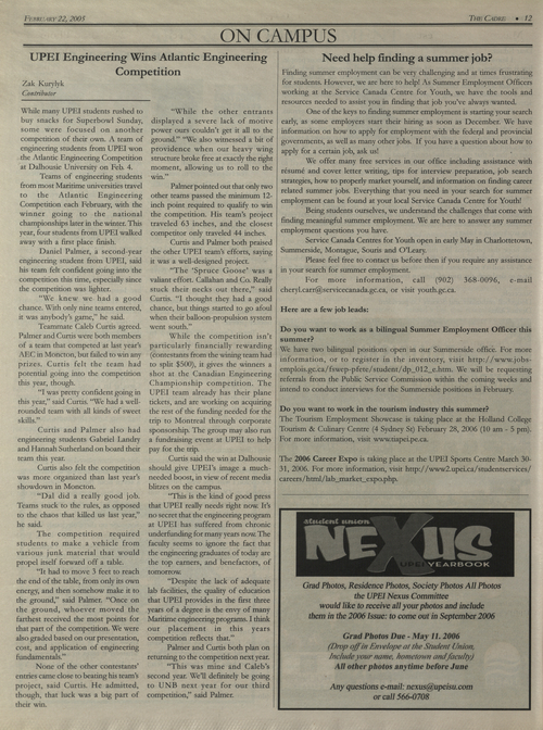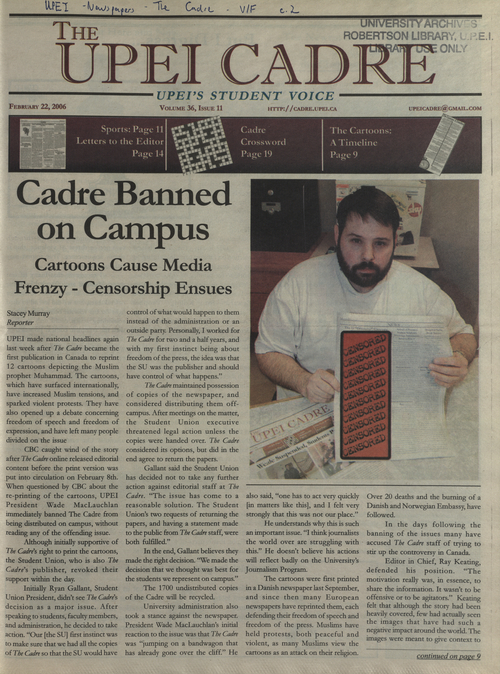 Title The Cadre -- 2006-02-22 Date Issued 2006-02-22 Language English Type Text Genre Issue Rights This material has been made available for research, education, and private use only. Publication, distribution or commercial use of the material requires permission from the copyright holder. Member of Cadre Digitization Agency Robertson Library, UPEI