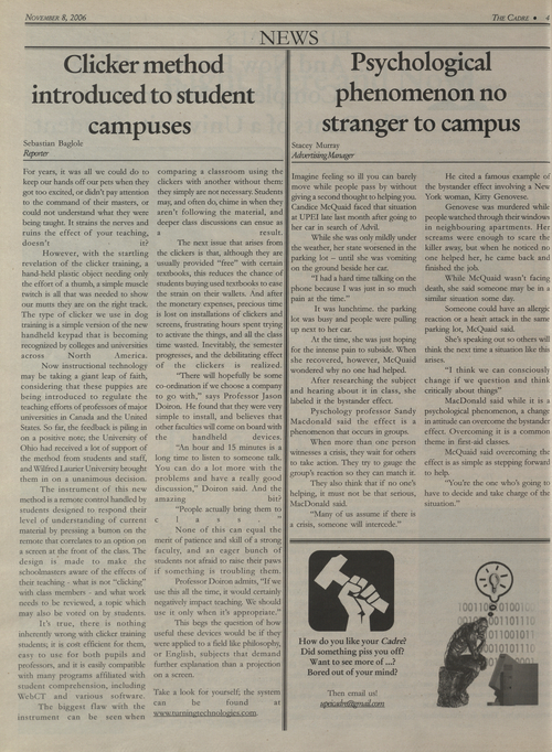 Title The Cadre -- 2006-11-08 -- Page 4 Date Issued 2006-11-08 Language English Type Text Genre Page Extent 1 page Rights This material has been made available for research, education, and private use only. Publication, distribution or commercial use of the material requires permission from the copyright holder. Member of The Cadre -- 2006-11-08 Digitization Agency Robertson Library, UPEI