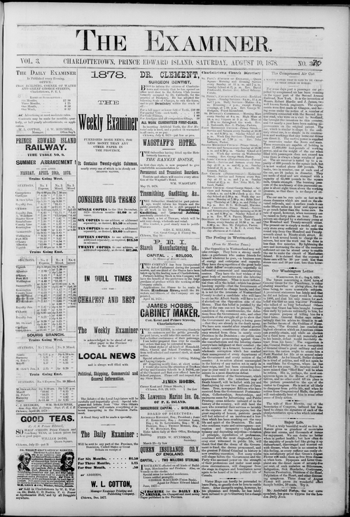 Title Examiner -- 1878-08-10 Date Issued 1878-08-10 Language English Type Text Genre Issue Rights Digitized with permission. For educational, research and study purposes. Member of Examiner Digitization Agency West Canadian Digital Imaging Inc. Issue 370 Volume 3