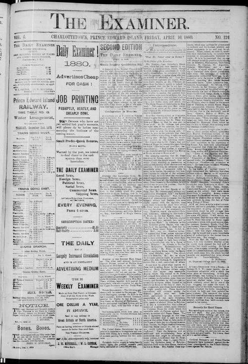 Title Examiner -- 1880-04-16 Date Issued 1880-04-16 Language English Type Text Genre Issue Rights Digitized with permission. For educational, research and study purposes. Member of Examiner Digitization Agency West Canadian Digital Imaging Inc. Issue 124 Volume 6