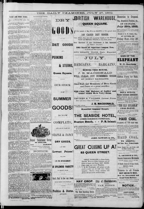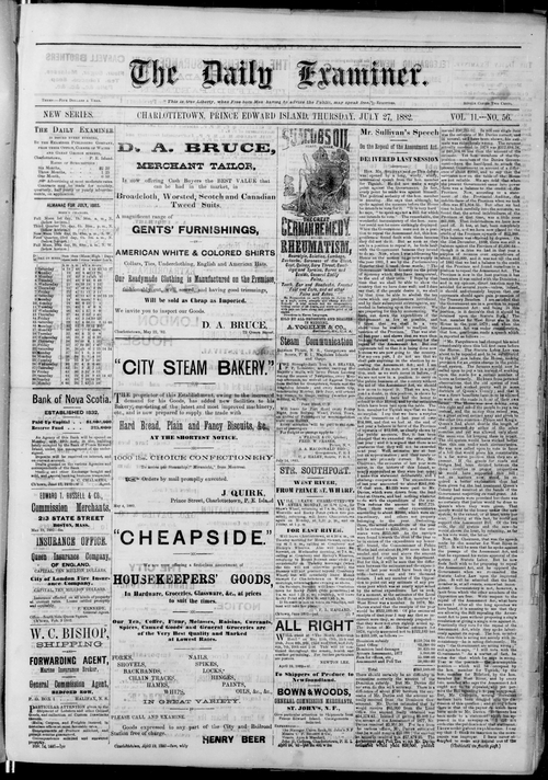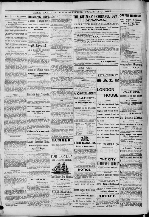 Title Examiner -- 1882-07-27 Date Issued 1882-07-27 Language English Type Text Genre Issue Rights Digitized with permission. For educational, research and study purposes. Member of Examiner Digitization Agency West Canadian Digital Imaging Inc. Issue 56 Volume 11