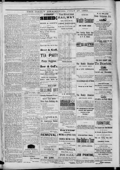 Title Examiner -- 1882-07-27 -- Page 04 Date Issued 1882-07-27 Language English Type Text Genre Page Extent 1 page Rights Digitized with permission. For educational, research and study purposes. Member of Examiner -- 1882-07-27 Digitization Agency West Canadian Digital Imaging Inc.