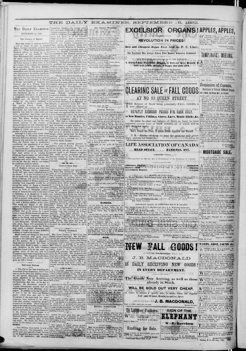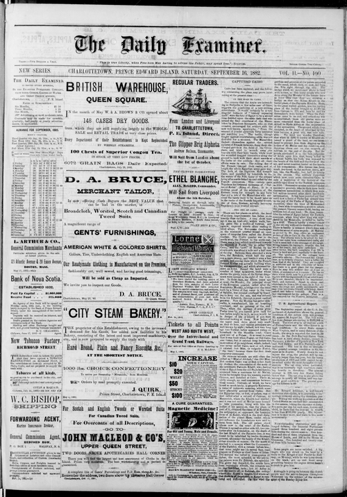 Title Examiner -- 1882-09-16 Date Issued 1882-09-16 Language English Type Text Genre Issue Rights Digitized with permission. For educational, research and study purposes. Member of Examiner Digitization Agency West Canadian Digital Imaging Inc. Issue 100 Volume 11