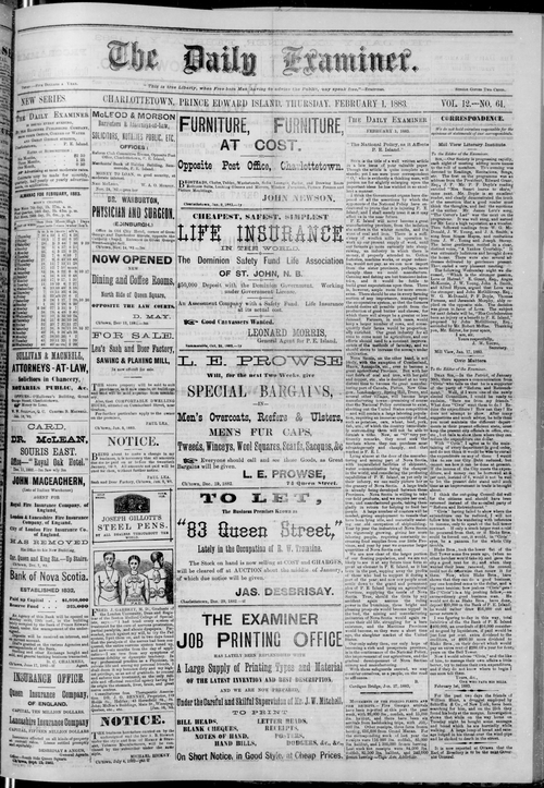 Title Examiner -- 1883-02-01 Date Issued 1883-02-01 Language English Type Text Genre Issue Rights Digitized with permission. For educational, research and study purposes. Member of Examiner Digitization Agency West Canadian Digital Imaging Inc. Issue 61 Volume 12