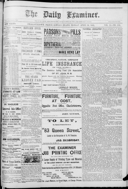 Title Examiner -- 1883-04-16 -- Page 01 Date Issued 1883-04-16 Language English Type Text Genre Page Extent 1 page Rights Digitized with permission. For educational, research and study purposes. Member of Examiner -- 1883-04-16 Digitization Agency West Canadian Digital Imaging Inc.