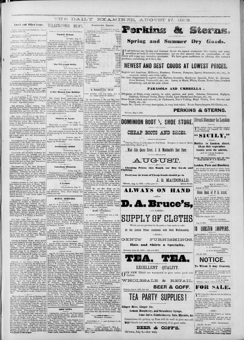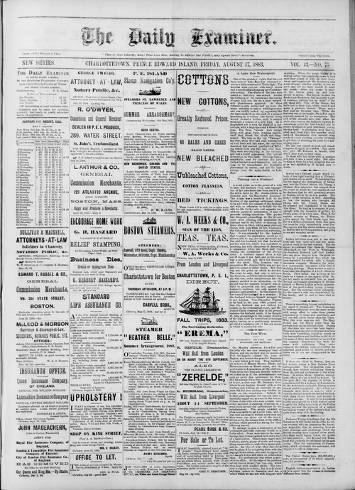 Title Examiner -- 1883-08-17 Date Issued 1883-08-17 Language English Type Text Genre Issue Rights Digitized with permission. For educational, research and study purposes. Member of Examiner Digitization Agency West Canadian Digital Imaging Inc. Issue 75 Volume 13