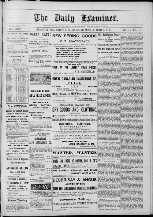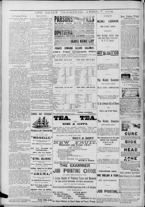 Title Examiner -- 1884-04-07 Date Issued 1884-04-07 Language English Type Text Genre Issue Rights Digitized with permission. For educational, research and study purposes. Member of Examiner Digitization Agency West Canadian Digital Imaging Inc. Issue 117 Volume 14