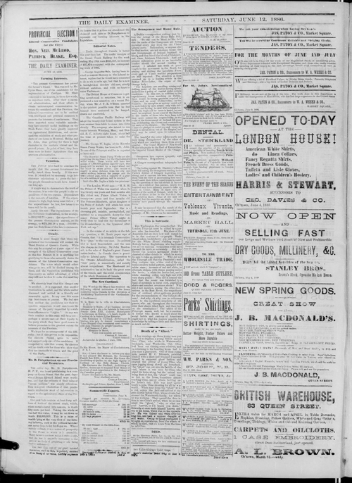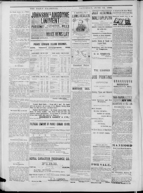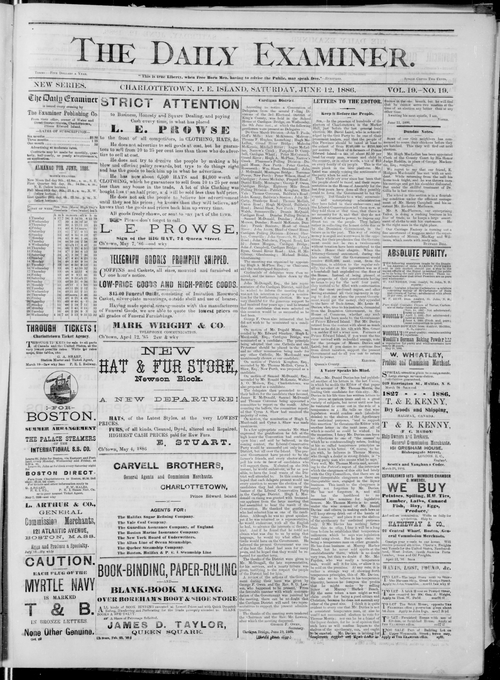 Title Examiner -- 1886-06-12 Date Issued 1886-06-12 Language English Type Text Genre Issue Rights Digitized with permission. For educational, research and study purposes. Member of Examiner Digitization Agency West Canadian Digital Imaging Inc. Issue 19 Volume 19