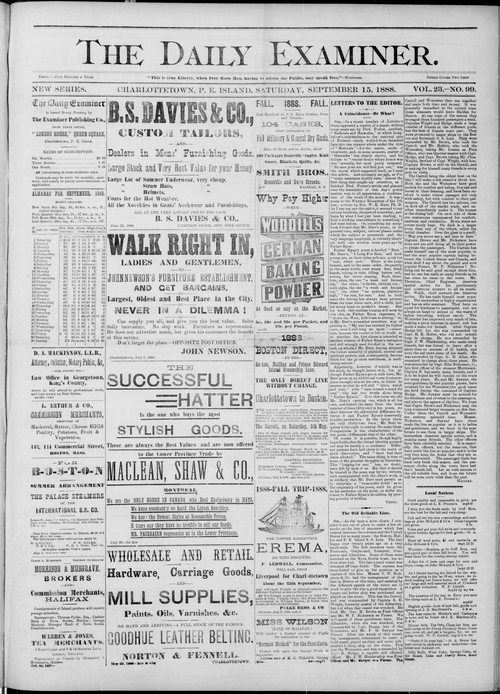 Title Examiner -- 1888-09-15 Date Issued 1888-09-15 Language English Type Text Genre Issue Rights Digitized with permission. For educational, research and study purposes. Member of Examiner Digitization Agency West Canadian Digital Imaging Inc. Issue 99 Volume 23