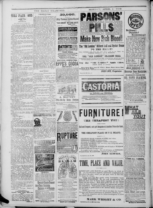 Title Examiner -- 1889-04-01 -- Page 04 Date Issued 1889-04-01 Language English Type Text Genre Page Extent 1 page Rights Digitized with permission. For educational, research and study purposes. Member of Examiner -- 1889-04-01 Digitization Agency West Canadian Digital Imaging Inc.