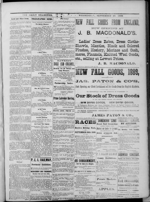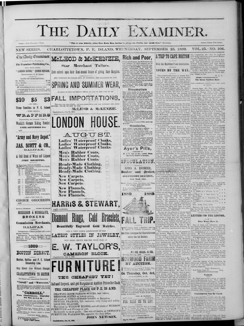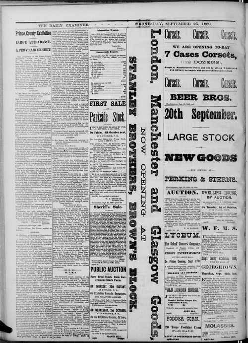 Title Examiner -- 1889-09-25 Date Issued 1889-09-25 Language English Type Text Genre Issue Rights Digitized with permission. For educational, research and study purposes. Member of Examiner Digitization Agency West Canadian Digital Imaging Inc. Issue 104 Volume 25