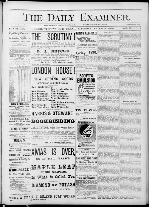 Title Examiner -- 1890-03-08 -- Page 01 Date Issued 1890-03-08 Language English Type Text Genre Page Extent 1 page Rights Digitized with permission. For educational, research and study purposes. Member of Examiner -- 1890-03-08 Digitization Agency West Canadian Digital Imaging Inc.