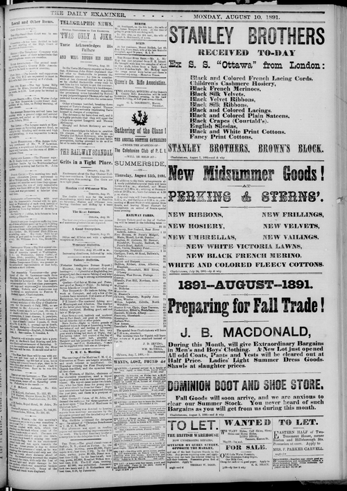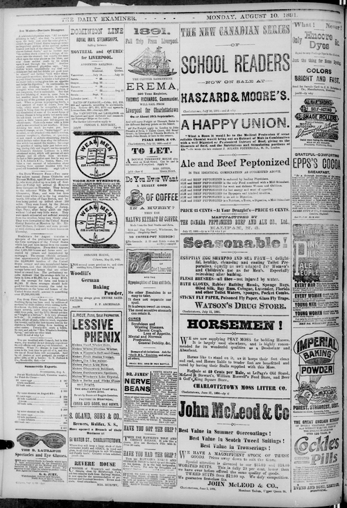 Title Examiner -- 1891-08-10 Date Issued 1891-08-10 Language English Type Text Genre Issue Rights Digitized with permission. For educational, research and study purposes. Member of Examiner Digitization Agency West Canadian Digital Imaging Inc. Issue 68 Volume 28
