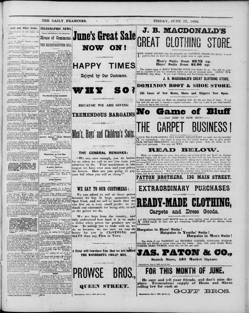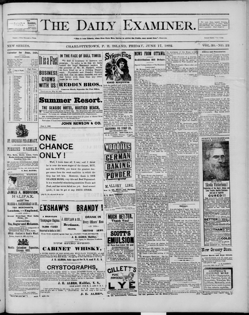 Title Examiner -- 1892-06-17 Date Issued 1892-06-17 Language English Type Text Genre Issue Rights Digitized with permission. For educational, research and study purposes. Member of Examiner Digitization Agency West Canadian Digital Imaging Inc. Issue 23 Volume 30