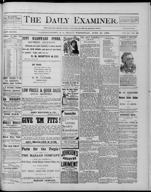 Title Examiner -- 1893-06-28 -- Page 01 Date Issued 1893-06-28 Language English Type Text Genre Page Extent 1 page Rights Digitized with permission. For educational, research and study purposes. Member of Examiner -- 1893-06-28 Digitization Agency West Canadian Digital Imaging Inc.