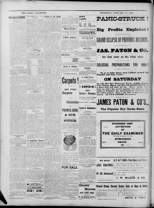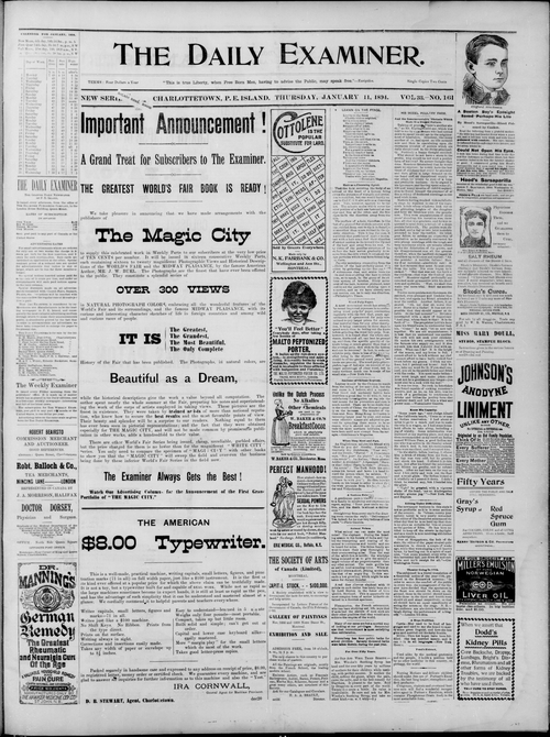 Title Examiner -- 1894-01-11 Date Issued 1894-01-11 Language English Type Text Genre Issue Rights Digitized with permission. For educational, research and study purposes. Member of Examiner Digitization Agency West Canadian Digital Imaging Inc. Issue 161 Volume 33