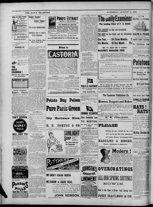 Title Examiner -- 1894-08-04 -- Page 04 Date Issued 1894-08-04 Language English Type Text Genre Page Extent 1 page Rights Digitized with permission. For educational, research and study purposes. Member of Examiner -- 1894-08-04 Digitization Agency West Canadian Digital Imaging Inc.
