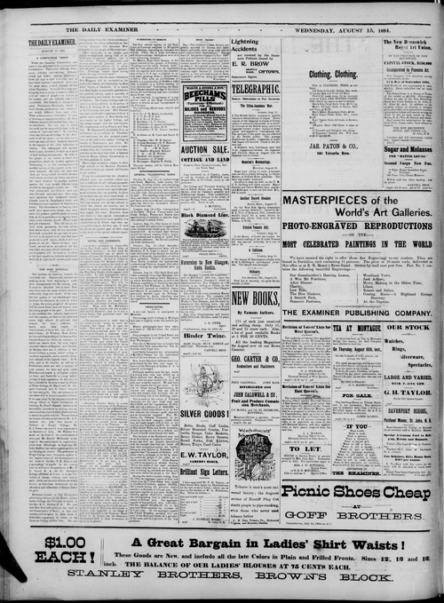 Title Examiner -- 1894-08-15 -- Page 02 Date Issued 1894-08-15 Language English Type Text Genre Page Extent 1 page Rights Digitized with permission. For educational, research and study purposes. Member of Examiner -- 1894-08-15 Digitization Agency West Canadian Digital Imaging Inc.