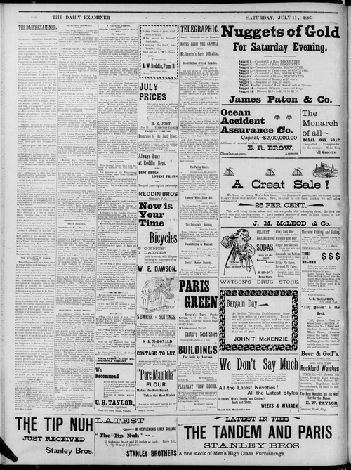 Title Examiner -- 1896-07-11 -- Page 02 Date Issued 1896-07-11 Language English Type Text Genre Page Extent 1 page Rights Digitized with permission. For educational, research and study purposes. Member of Examiner -- 1896-07-11 Digitization Agency West Canadian Digital Imaging Inc.