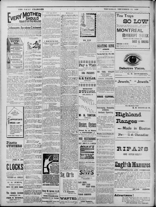 Title Examiner -- 1896-12-17 -- Page 04 Date Issued 1896-12-17 Language English Type Text Genre Page Extent 1 page Rights Digitized with permission. For educational, research and study purposes. Member of Examiner -- 1896-12-17 Digitization Agency West Canadian Digital Imaging Inc.