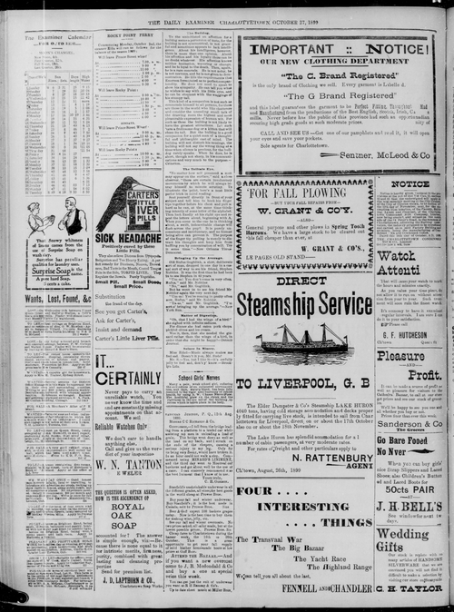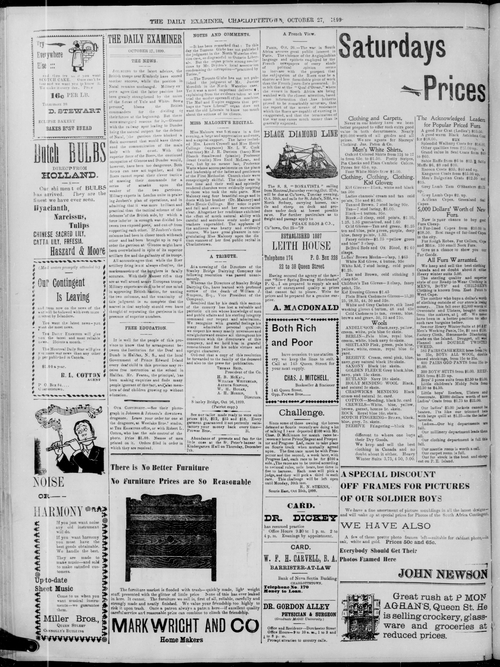 Title Examiner -- 1899-10-27 Date Issued 1899-10-27 Language English Type Text Genre Issue Rights Digitized with permission. For educational, research and study purposes. Member of Examiner Digitization Agency West Canadian Digital Imaging Inc. Issue 252 Volume 39