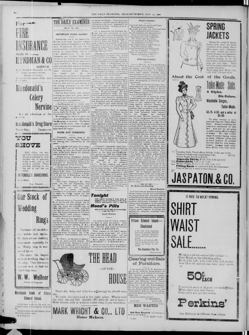 Title Examiner -- 1900-05-14 -- Page 04 Date Issued 1900-05-14 Language English Type Text Genre Page Extent 1 page Rights Digitized with permission. For educational, research and study purposes. Member of Examiner -- 1900-05-14 Digitization Agency West Canadian Digital Imaging Inc.