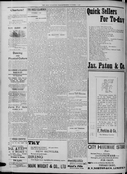 Title Examiner -- 1900-10-01 -- Page 04 Date Issued 1900-10-01 Language English Type Text Genre Page Extent 1 page Rights Digitized with permission. For educational, research and study purposes. Member of Examiner -- 1900-10-01 Digitization Agency West Canadian Digital Imaging Inc.