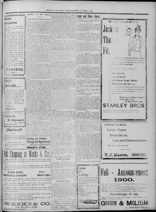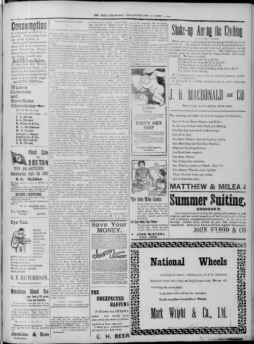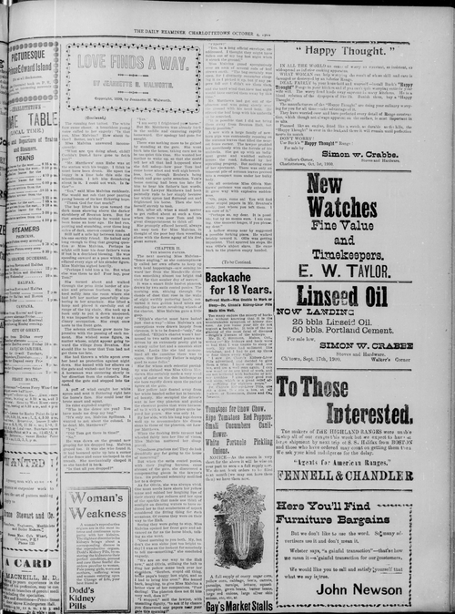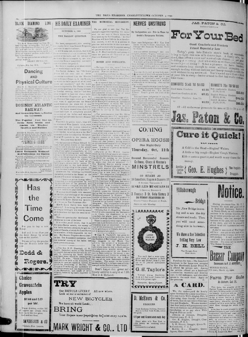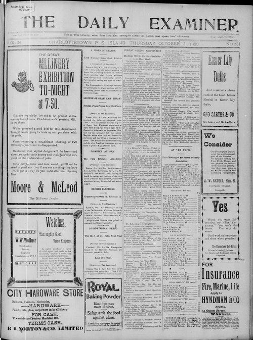 Title Examiner -- 1900-10-04 Date Issued 1900-10-04 Language English Type Text Genre Issue Rights Digitized with permission. For educational, research and study purposes. Member of Examiner Digitization Agency West Canadian Digital Imaging Inc. Issue 231 Volume 36