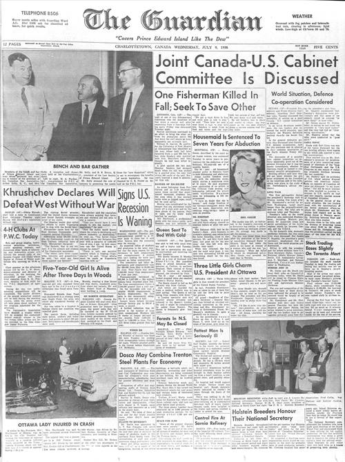 Title Guardian -- 1958-07-09 -- Page 1 Date Issued 1958-07-09 Language English Type Text Genre Page Extent 1 page Rights This material has been made available for research, education, and private use only. Publication, distribution or commercial use of the material requires permission from the copyright holder. Member of Guardian -- 1958-07-09 Digitization Agency Robertson Library, UPEI Reel Sequence Number 0077 Page Number 1 Owning Repository Robertson Library, UPEI