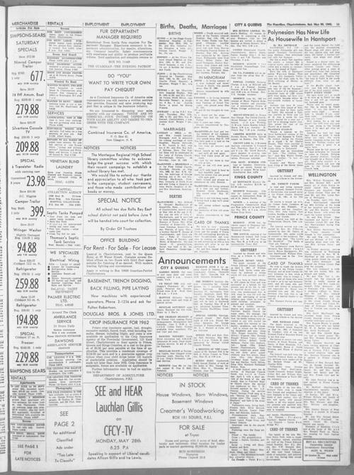 Title The Guardian -- 1962-05-26 -- Page 15 Date Issued 1962-05-26 Language English Type Text Genre Page Extent 1 page Rights This material has been made available for research, education, and private use only. Publication, distribution or commercial use of the material requires permission from the copyright holder. Member of The Guardian -- 1962-05-26 Digitization Agency Robertson Library, UPEI Reel Number 147 Reel Sequence Number 0503 Page Number 15 Owning Repository Robertson Library, UPEI