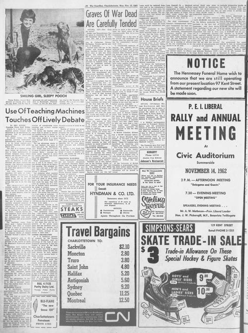 Title The Guardian -- 1962-11-12 -- Page 10 Date Issued 1962-11-12 Language English Type Text Genre Page Extent 1 page Rights This material has been made available for research, education, and private use only. Publication, distribution or commercial use of the material requires permission from the copyright holder. Member of The Guardian -- 1962-11-12 Digitization Agency Robertson Library, UPEI Reel Number 149 Reel Sequence Number 144 Page Number 10 Owning Repository Robertson Library, UPEI