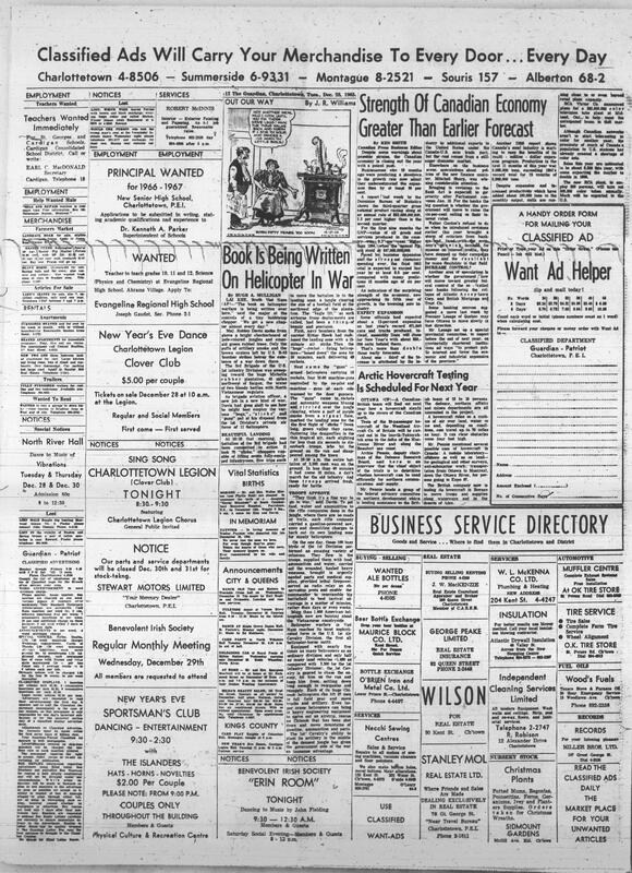 Title The Guardian -- 1965-12-28 -- Page 12 Date Issued 1965-12-28 Language English Type Text Genre Page Extent 1 page Rights This material has been made available for research, education, and private use only. Publication, distribution or commercial use of the material requires permission from the copyright holder. Member of The Guardian -- 1965-12-28 Digitization Agency Robertson Library, UPEI