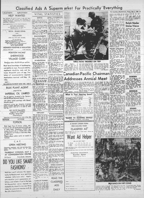 Title The Guardian -- 1966-05-05 -- Page 19 Date Issued 1966-05-05 Language English Type Text Genre Page Extent 1 page Rights This material has been made available for research, education, and private use only. Publication, distribution or commercial use of the material requires permission from the copyright holder. Member of The Guardian -- 1966-05-05 Digitization Agency Robertson Library, UPEI