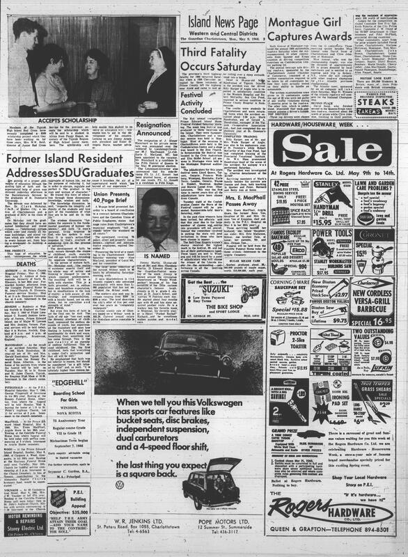 Title The Guardian -- 1966-05-09 -- Page 3 Date Issued 1966-05-09 Language English Type Text Genre Page Extent 1 page Rights This material has been made available for research, education, and private use only. Publication, distribution or commercial use of the material requires permission from the copyright holder. Member of The Guardian -- 1966-05-09 Digitization Agency Robertson Library, UPEI