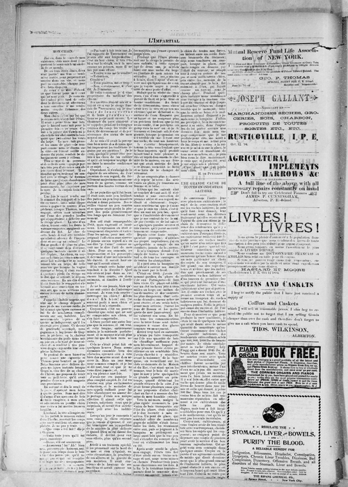 Title Impartial -- 1895-05-09 -- Page 04 Date Issued 1895-05-09 Language French Type Text Genre Page Extent 1 page Rights Digitized with permission. For educational, research and study purposes. Member of Impartial -- 1895-05-09 Digitization Agency West Canadian Digital Imaging Inc.