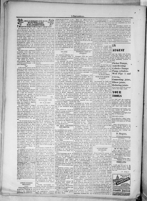 Title Impartial -- 1895-11-28 -- Page 08 Date Issued 1895-11-28 Language French Type Text Genre Page Extent 1 page Rights Digitized with permission. For educational, research and study purposes. Member of Impartial -- 1895-11-28 Digitization Agency West Canadian Digital Imaging Inc.