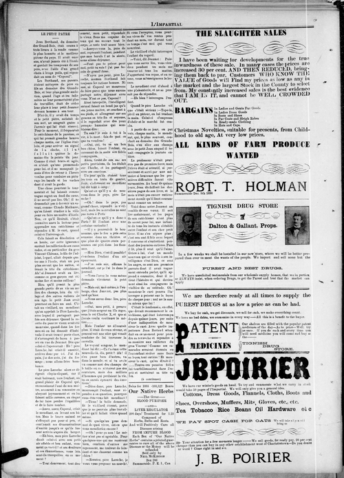 Title Impartial -- 1896-12-24 -- Page 08 Date Issued 1896-12-24 Language French Type Text Genre Page Extent 1 page Rights Digitized with permission. For educational, research and study purposes. Member of Impartial -- 1896-12-24 Digitization Agency West Canadian Digital Imaging Inc.