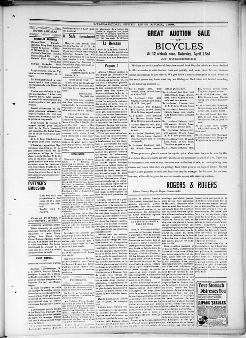 Title Impartial -- 1898-04-21 -- Page 05 Date Issued 1898-04-21 Language French Type Text Genre Page Extent 1 page Rights Digitized with permission. For educational, research and study purposes. Member of Impartial -- 1898-04-21 Digitization Agency West Canadian Digital Imaging Inc.
