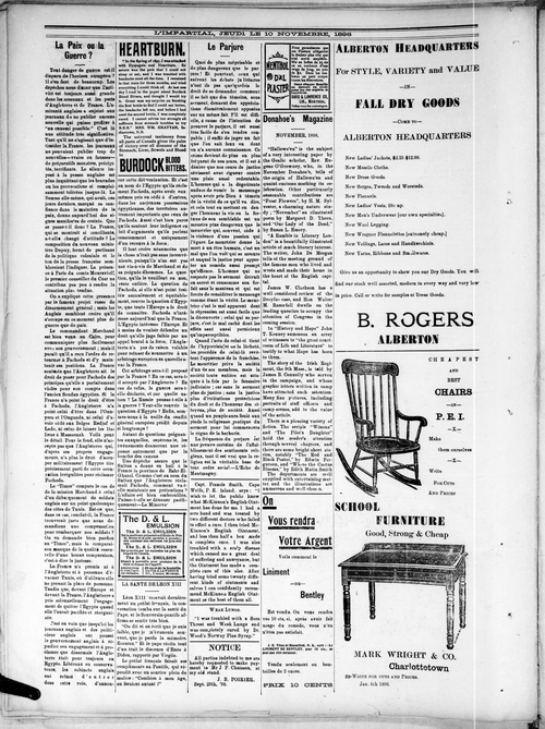Title Impartial -- 1898-11-10 -- Page 06 Date Issued 1898-11-10 Language French Type Text Genre Page Extent 1 page Rights Digitized with permission. For educational, research and study purposes. Member of Impartial -- 1898-11-10 Digitization Agency West Canadian Digital Imaging Inc.