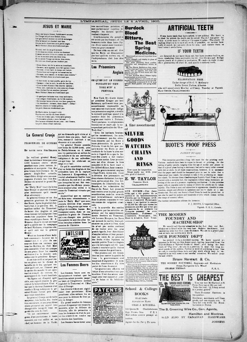 Title Impartial -- 1900-04-05 -- Page 07 Date Issued 1900-04-05 Language French Type Text Genre Page Extent 1 page Rights Digitized with permission. For educational, research and study purposes. Member of Impartial -- 1900-04-05 Digitization Agency West Canadian Digital Imaging Inc.