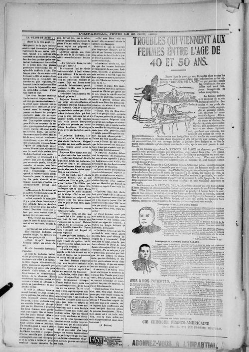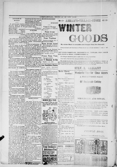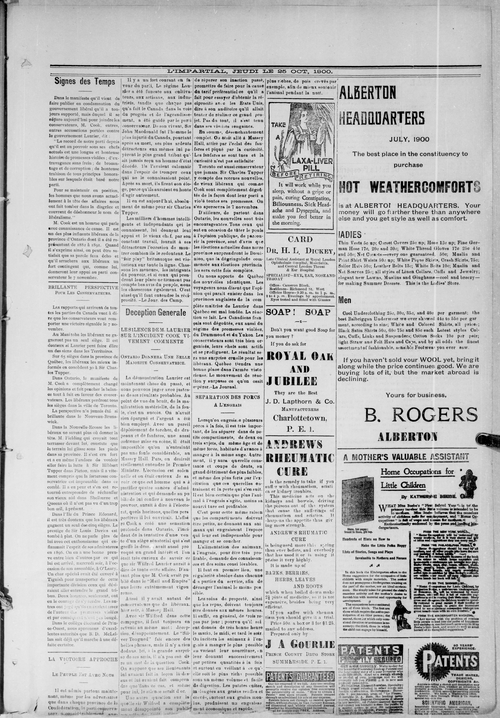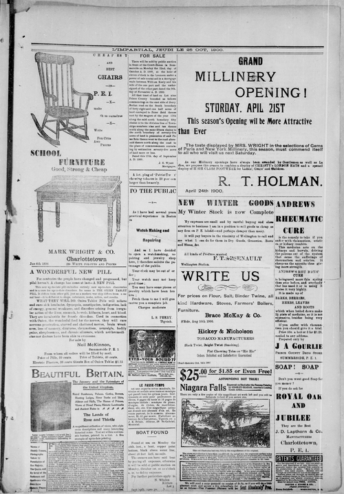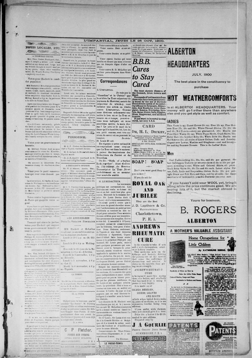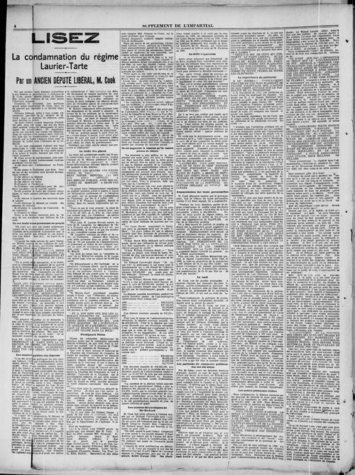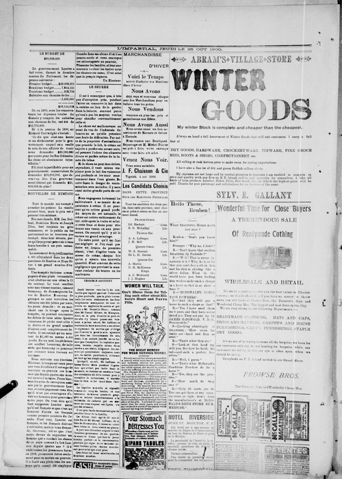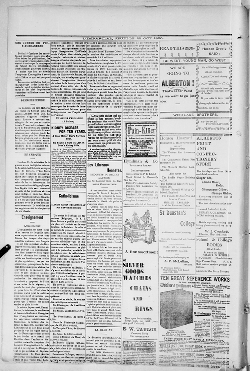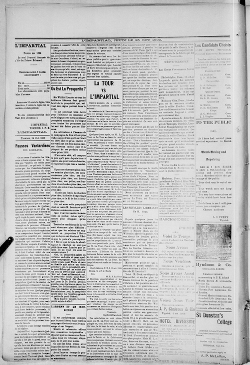 Title L'Impartial -- 1900-10-25 Date Issued 1900-10-25 Language French Type Text Genre Issue Rights Digitized with permission. For educational, research and study purposes. Member of L'Impartial Digitization Agency West Canadian Digital Imaging Inc. Issue 4 Volume 8