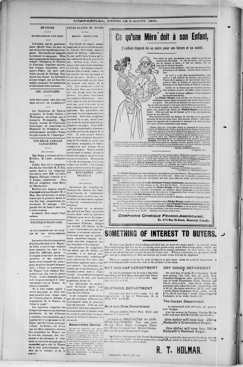 Title Impartial -- 1901-08-08 -- Page 02 Date Issued 1901-08-08 Language French Type Text Genre Page Extent 1 page Rights Digitized with permission. For educational, research and study purposes. Member of Impartial -- 1901-08-08 Digitization Agency West Canadian Digital Imaging Inc.