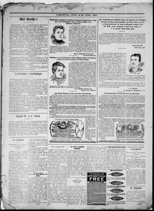 Title Impartial -- 1903-04-30 -- Page 07 Date Issued 1903-04-30 Language French Type Text Genre Page Extent 1 page Rights Digitized with permission. For educational, research and study purposes. Member of Impartial -- 1903-04-30 Digitization Agency West Canadian Digital Imaging Inc.