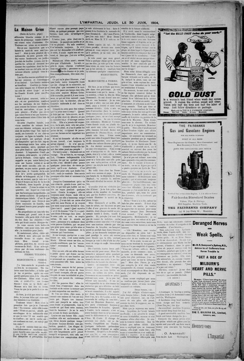 Title Impartial -- 1904-06-30 -- Page 08 Date Issued 1904-06-30 Language French Type Text Genre Page Extent 1 page Rights Digitized with permission. For educational, research and study purposes. Member of Impartial -- 1904-06-30 Digitization Agency West Canadian Digital Imaging Inc.