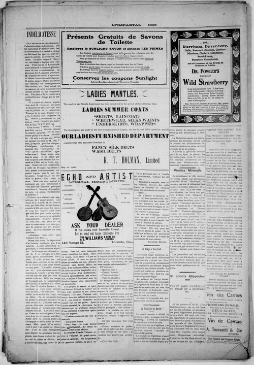 Title Impartial -- 1906-08-23 -- Page 04 Date Issued 1906-08-23 Language French Type Text Genre Page Extent 1 page Rights Digitized with permission. For educational, research and study purposes. Member of Impartial -- 1906-08-23 Digitization Agency West Canadian Digital Imaging Inc.
