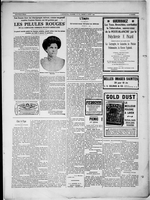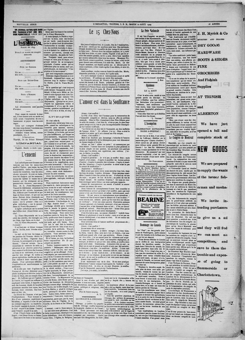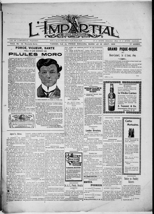 Title Impartial -- 1909-08-10 Date Issued 1909-08-10 Language French Type Text Genre Issue Rights Digitized with permission. For educational, research and study purposes. Member of L'Impartial Digitization Agency West Canadian Digital Imaging Inc. Issue 13 Volume 2