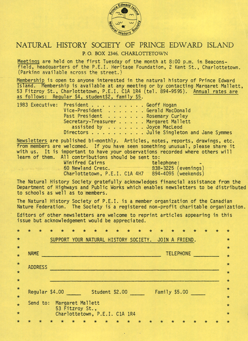 Title Newsletter -- 1983-01-01 -- Page 2 Date Issued 1983-01-01 Language English Type Text Genre Page Extent 1 page Rights This material has been made available for research, education, and private use only. Publication, distribution or commercial use of the material requires permission from the copyright holder. Member of Newsletter -- 1983-01-01 Digitization Agency Robertson Library, UPEI Reel Number none Reel Sequence Number 0539 Page Number 2 Owning Repository Robertson Library, UPEI
